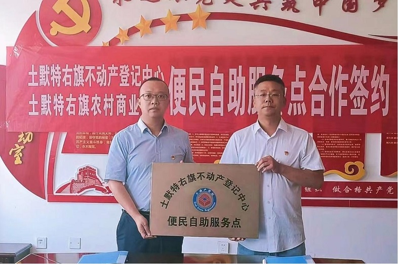 为进一步深化“放管服”改革,优化土右旗营商环境,不断提升不动产登记工作效率和服务水平, 近日,土默特右旗不动产登记中心与土默特右旗农村商业银行共同举行不动产抵押登记签约暨便民服务点揭牌仪式,标志着土右旗首个“互联网+不动产抵押登记”便民服务点正式设立,开启了不动产抵押登记“一站式”服务模式。