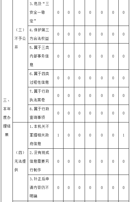 三、收到和处理政府信息公开申请情况